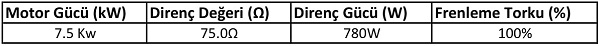 - Frenleme Direnci Tablosu