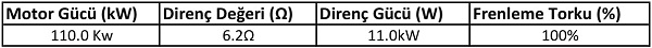 - Frenleme Direnci Tablosu