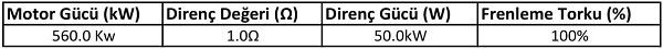 - Frenleme Direnci Tablosu