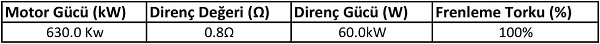 - Frenleme Direnci Tablosu